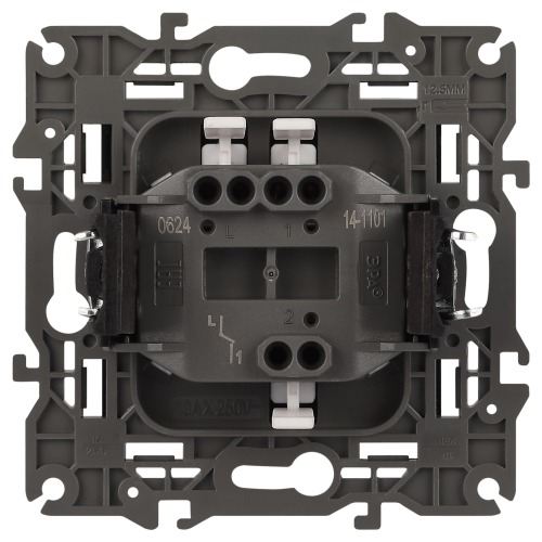 Выключатель 1-клавишный Эра Elegance антрацит 14-1101-05. Оснащён автоматическими клеммами для надёжной фиксации жил кабеля в механизме. Рамки приобретаются отдельно.