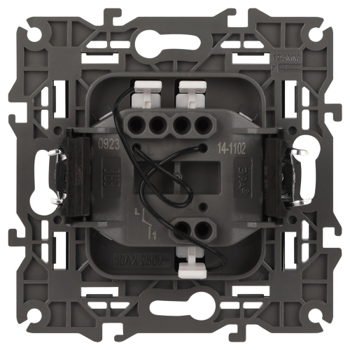 Выключатель 1-клавишный подсветка Эра Elegance антрацит 14-1102-05. Оснащён автоматическими клеммами для надёжной фиксации жил кабеля в механизме. Рамки приобретаются отдельно.