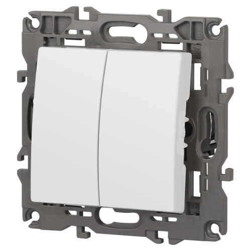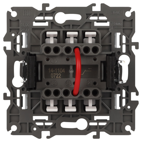 Выключатель 2-клавишный Эра Elegance белый 14-1104-01. Оснащён автоматическими клеммами для надёжной фиксации жил кабеля в механизме. Рамки приобретаются отдельно. Рамки Эра Elegance ПЛАСТИК: 1 пост 14-5001-хх, 2 поста 14-5002-хх, 3 поста 14-5003-хх, 4 поста 14-5004-хх, 5 постов 14-5005-хх; СТЕКЛО: 1 пост 14-5101-хх, 2 поста 14-5102-хх, 3 поста 14-5103-хх, 4 поста 14-5104-хх; МЕТАЛЛ: 1 пост 14-5201-хх, 2 поста 14-5202-хх, 3 поста 14-5203-хх, 4 поста 14-5204-хх; ДЕРЕВО: 1 пост 14-5301-хх, 2 поста 14-5302-хх, 3 поста 14-5303-хх, 4 поста 14-5304-хх (хх - код цвета: 00-прозрачный, 01-белый, белёный дуб, 02-слоновая кость, 03-алюминий, 04-шампань, 05-чёрный, чёрное дерево, 07-ясень, 09-дуб, 10-венге, 11-клён, 14-медь, 21-жёлтый, 22-оранжевый, 23-красный, 25-бордо, 26-лайм, 27-зелёный, 28-голубой, 29-синий, 30-розовый, 31-мокко, 32-серый, 41-сталь, 42-титан).
