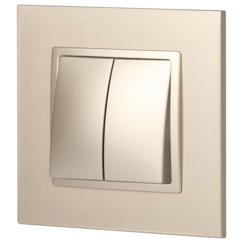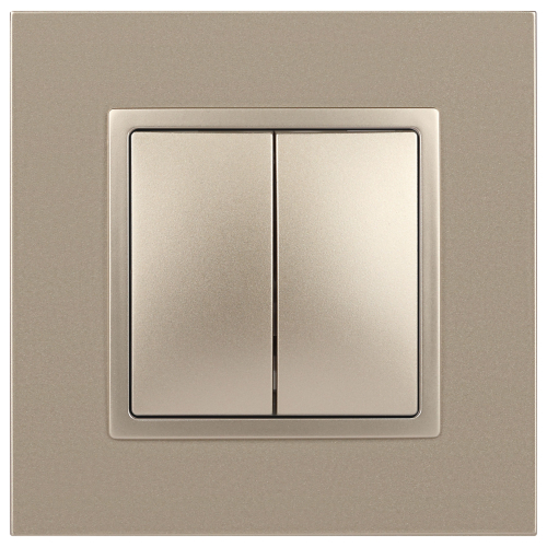 Выключатель 2-клавишный Эра Elegance шампань 14-1104-04. Оснащён автоматическими клеммами для надёжной фиксации жил кабеля в механизме. Рамки приобретаются отдельно.