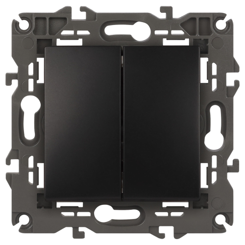 Выключатель 2-клавишный Эра Elegance антрацит 14-1104-05. Оснащён автоматическими клеммами для надёжной фиксации жил кабеля в механизме. Рамки приобретаются отдельно.