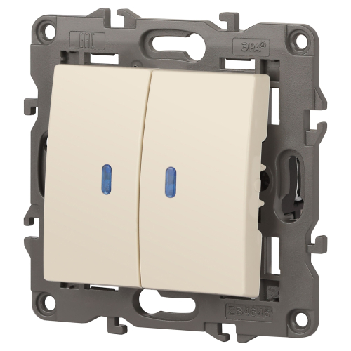 Выключатель 2-клавишный подсветка Эра Elegance слоновая кость 14-1105-02. Оснащён автоматическими клеммами для надёжной фиксации жил кабеля в механизме. Рамки приобретаются отдельно.