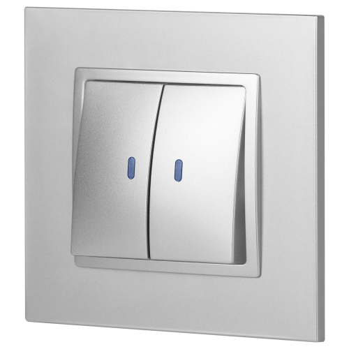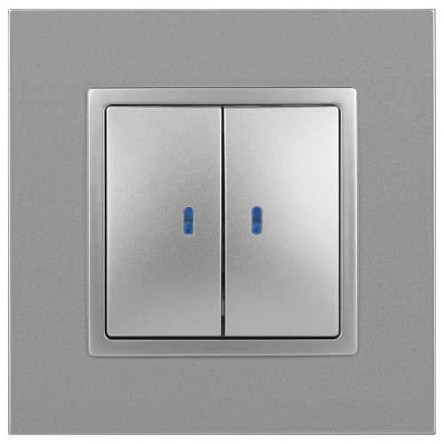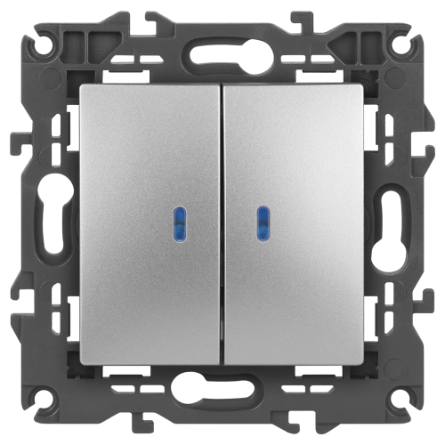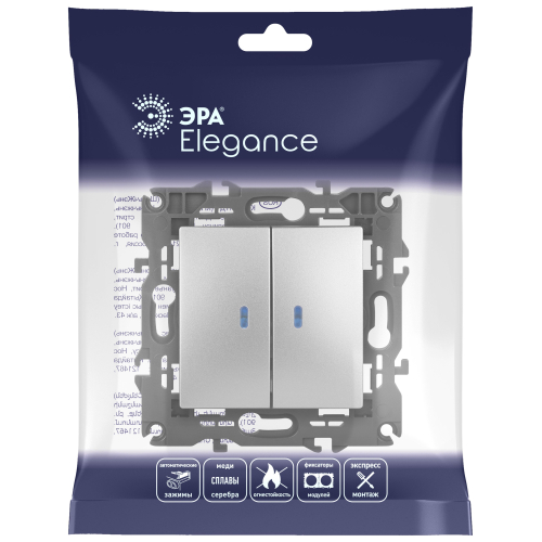 Выключатель 2-клавишный подсветка Эра Elegance алюминий 14-1105-03. Оснащён автоматическими клеммами для надёжной фиксации жил кабеля в механизме. Рамки приобретаются отдельно.