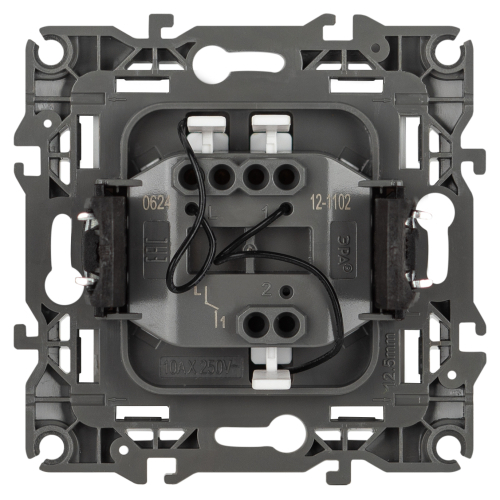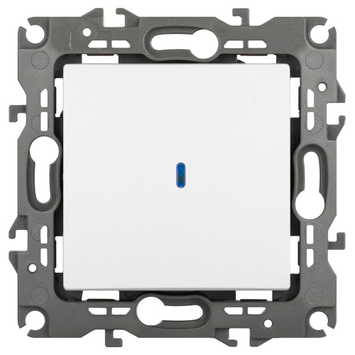 Выключатель одноклавишный с подсветкой серии Эра 12 скрытой установки механизм цвет белый матовый 12-1102-01М. Номинальные характеристики 10А 250В . Сделан из поликарбоната, оснащён автоматическими клеммами для быстрой и надёжной фиксации жил кабеля в механизме. Парные клеммы обеспечивают соединение шлейфом. Монтаж в подрозетник производится и на лапки, и на винты. Рамки приобретаются отдельно.
