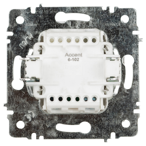 Выключатель 1-клавишный с подсветкой серии Intro Accent скрытой установки механизм цвет белый 6-102-01. Номинальные характеристики 10А 250В. Выполнен из негорючего термопласта, оснащён винтовыми клеммами. Парные клеммы обеспечивают соединение шлейфом. Монтаж в подрозетник производится и на лапки, и на винты. Рамка приобретается отдельно. В серии представлены рамки до 5 постов: на 1 пост - 6-501-хх, на 2 поста - 6-502-хх, на 3 поста - 6-503-хх, на 6 поста - 4-504-хх, на 5 постов - 6-505-хх (где хх - цветовой код: 01 - белый, 01М - матовый белый, 02 - слоновая кость, 03 - алюминий, 04 - шампань, 05 - антрацит, 06 - перламутр, 07 - графит, 08 - бронза, 09 - титан, 10 - венге, 11 - сосна).
