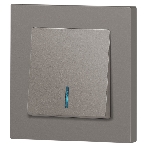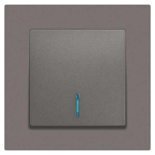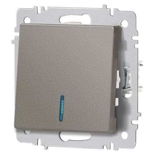 Выключатель 1-клавишный с подсветкой серии Intro Accent скрытой установки механизм цвет титан 6-102-09. Номинальные характеристики 10А 250В. Выполнен из негорючего термопласта, оснащён винтовыми клеммами. Парные клеммы обеспечивают соединение шлейфом. Монтаж в подрозетник производится и на лапки, и на винты. Рамка приобретается отдельно. В серии представлены рамки до 5 постов: на 1 пост - 6-501-хх, на 2 поста - 6-502-хх, на 3 поста - 6-503-хх, на 6 поста - 4-504-хх, на 5 постов - 6-505-хх (где хх - цветовой код: 01 - белый, 01М - матовый белый, 02 - слоновая кость, 03 - алюминий, 04 - шампань, 05 - антрацит, 06 - перламутр, 07 - графит, 08 - бронза, 09 - титан, 10 - венге, 11 - сосна)