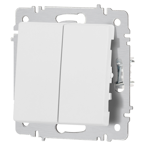 Выключатель 2-клавишный серии Intro Accent скрытой установки механизм цвет белый матовый 6-104-01М. Номинальные характеристики 10А 250В. Выполнен из негорючего термопласта, оснащён винтовыми клеммами. Парные клеммы обеспечивают соединение шлейфом. Монтаж в подрозетник производится и на лапки, и на винты. Рамка приобретается отдельно. В серии представлены рамки до 5 постов: на 1 пост - 6-501-хх, на 2 поста - 6-502-хх, на 3 поста - 6-503-хх, на 6 поста - 4-504-хх, на 5 постов - 6-505-хх (где хх - цветовой код: 01 - белый, 01М - матовый белый, 02 - слоновая кость, 03 - алюминий, 04 - шампань, 05 - антрацит, 06 - перламутр, 07 - графит, 08 - бронза, 09 - титан, 10 - венге, 11 - сосна).