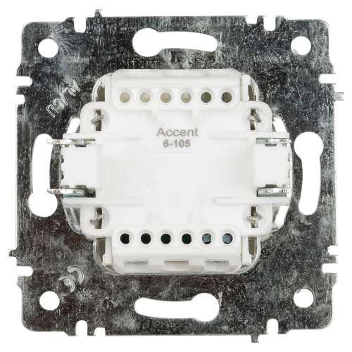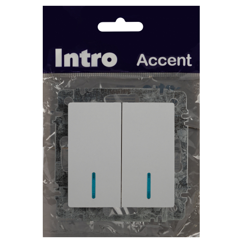 Выключатель 2-клавишный с подсветкой серии Intro Accent скрытой установки механизм цвет белый 6-105-01. Номинальные характеристики 10А 250В. Выполнен из негорючего термопласта, оснащён винтовыми клеммами. Парные клеммы обеспечивают соединение шлейфом. Монтаж в подрозетник производится и на лапки, и на винты. Рамка приобретается отдельно. В серии представлены рамки до 5 постов: на 1 пост - 6-501-хх, на 2 поста - 6-502-хх, на 3 поста - 6-503-хх, на 6 поста - 4-504-хх, на 5 постов - 6-505-хх (где хх - цветовой код: 01 - белый, 01М - матовый белый, 02 - слоновая кость, 03 - алюминий, 04 - шампань, 05 - антрацит, 06 - перламутр, 07 - графит, 08 - бронза, 09 - титан, 10 - венге, 11 - сосна)
