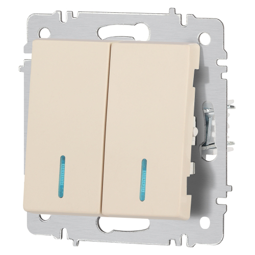 Выключатель 2-клавишный с подсветкой серии Intro Accent скрытой установки механизм цвет слоновая кость 6-105-02. Номинальные характеристики 10А 250В. Выполнен из негорючего термопласта, оснащён винтовыми клеммами. Парные клеммы обеспечивают соединение шлейфом. Монтаж в подрозетник производится и на лапки, и на винты. Рамка приобретается отдельно. В серии представлены рамки до 5 постов: на 1 пост - 6-501-хх, на 2 поста - 6-502-хх, на 3 поста - 6-503-хх, на 6 поста - 4-504-хх, на 5 постов - 6-505-хх (где хх - цветовой код: 01 - белый, 01М - матовый белый, 02 - слоновая кость, 03 - алюминий, 04 - шампань, 05 - антрацит, 06 - перламутр, 07 - графит, 08 - бронза, 09 - титан, 10 - венге, 11 - сосна)