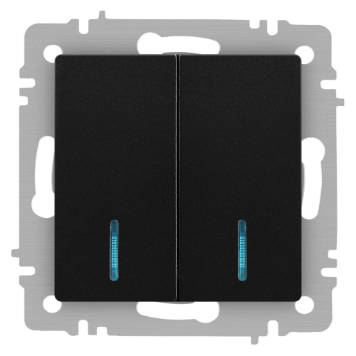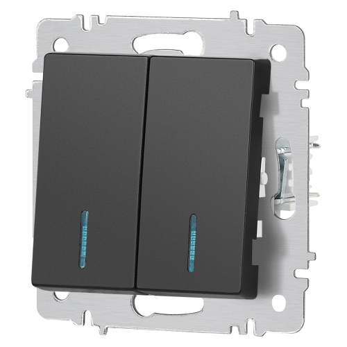 Выключатель 2-клавишный с подсветкой серии Intro Accent скрытой установки механизм цвет антрацит 6-105-05. Номинальные характеристики 10А 250В. Выполнен из негорючего термопласта, оснащён винтовыми клеммами. Парные клеммы обеспечивают соединение шлейфом. Монтаж в подрозетник производится и на лапки, и на винты. Рамка приобретается отдельно. В серии представлены рамки до 5 постов: на 1 пост - 6-501-хх, на 2 поста - 6-502-хх, на 3 поста - 6-503-хх, на 6 поста - 4-504-хх, на 5 постов - 6-505-хх (где хх - цветовой код: 01 - белый, 01М - матовый белый, 02 - слоновая кость, 03 - алюминий, 04 - шампань, 05 - антрацит, 06 - перламутр, 07 - графит, 08 - бронза, 09 - титан, 10 - венге, 11 - сосна)