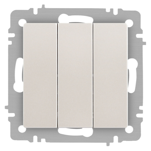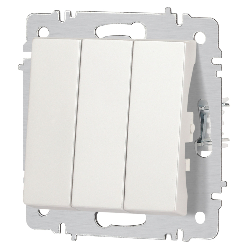 Выключатель 3-клавишный серии Intro Accent скрытой установки механизм цвет перламутр 6-106-06. Номинальные характеристики 10А 250В. Выполнен из негорючего термопласта, оснащён винтовыми клеммами. Парные клеммы обеспечивают соединение шлейфом. Монтаж в подрозетник производится и на лапки, и на винты. Рамка приобретается отдельно. В серии представлены рамки до 5 постов: на 1 пост - 6-501-хх, на 2 поста - 6-502-хх, на 3 поста - 6-503-хх, на 6 поста - 4-504-хх, на 5 постов - 6-505-хх (где хх - цветовой код: 01 - белый, 01М - матовый белый, 02 - слоновая кость, 03 - алюминий, 04 - шампань, 05 - антрацит, 06 - перламутр, 07 - графит, 08 - бронза, 09 - титан, 10 - венге, 11 - сосна)