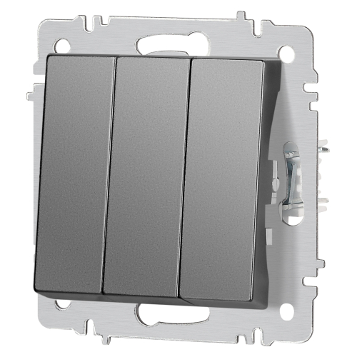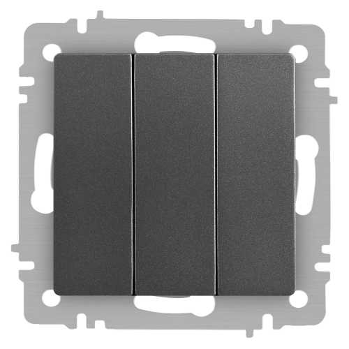 Выключатель 3-клавишный серии Intro Accent скрытой установки механизм цвет графит 6-106-07. Номинальные характеристики 10А 250В. Выполнен из негорючего термопласта, оснащён винтовыми клеммами. Парные клеммы обеспечивают соединение шлейфом. Монтаж в подрозетник производится и на лапки, и на винты. Рамка приобретается отдельно. В серии представлены рамки до 5 постов: на 1 пост - 6-501-хх, на 2 поста - 6-502-хх, на 3 поста - 6-503-хх, на 6 поста - 4-504-хх, на 5 постов - 6-505-хх (где хх - цветовой код: 01 - белый, 01М - матовый белый, 02 - слоновая кость, 03 - алюминий, 04 - шампань, 05 - антрацит, 06 - перламутр, 07 - графит, 08 - бронза, 09 - титан, 10 - венге, 11 - сосна)