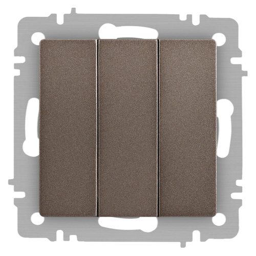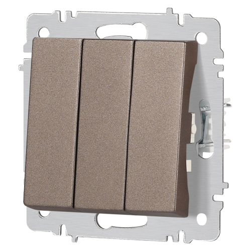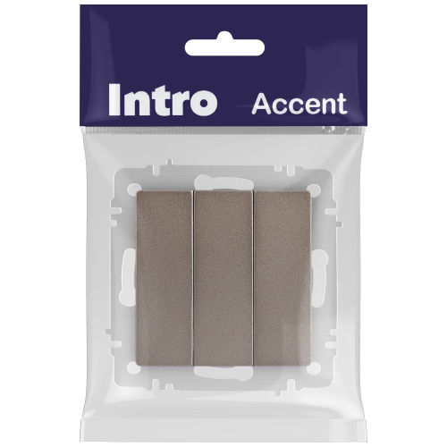 Выключатель 3-клавишный серии Intro Accent скрытой установки механизм цвет бронза 6-106-08. Номинальные характеристики 10А 250В. Выполнен из негорючего термопласта, оснащён винтовыми клеммами. Парные клеммы обеспечивают соединение шлейфом. Монтаж в подрозетник производится и на лапки, и на винты. Рамка приобретается отдельно. В серии представлены рамки до 5 постов: на 1 пост - 6-501-хх, на 2 поста - 6-502-хх, на 3 поста - 6-503-хх, на 6 поста - 4-504-хх, на 5 постов - 6-505-хх (где хх - цветовой код: 01 - белый, 01М - матовый белый, 02 - слоновая кость, 03 - алюминий, 04 - шампань, 05 - антрацит, 06 - перламутр, 07 - графит, 08 - бронза, 09 - титан, 10 - венге, 11 - сосна)