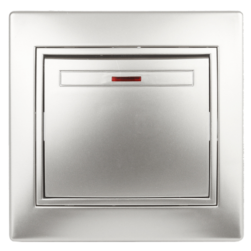 Выключатель одноклавишный с подсветкой, 10А-250В, IP20, СУ, алюминий Intro Plano 1-102-03