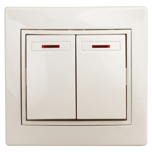 Выключатель Intro Plano 1-105-02 двухклавишный с подсветкой, 10А-250В, IP20, СУ, слоновая кость