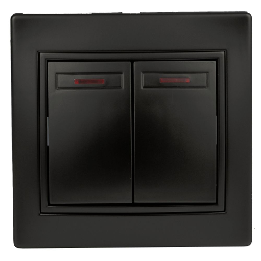 Выключатель двойной с подсветкой, 10А-250В, IP20, СУ, антрацит Intro Plano 1-105-05