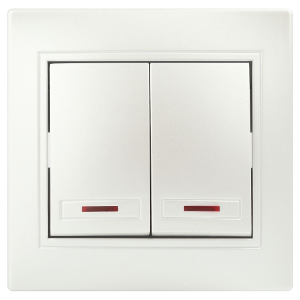 Выключатель двуклавишный с подсветкой серии Intro Plano скрытой установки цвет перламутр 1-105-06. Номинальные характеристики 10А 250В . Выключатель выполнен из качественного негорючего термопласта, укомплектован одноместной рамкой, оснащён винтовыми клеммами. Вертикальное расположение клемм обеспечивает удобный и надёжный монтаж. Клеммы с двумя отверстиями позволяют соединять соседние выключатели шлейфом. Установка в подрозетник производится как на монтажные лапки, так и на винты. Для установки 2-х и более выключателей в несколько подрозетников в ряд дополнительно используются многоместные рамки: 2-х постовая - 1-502-хх, 3-х постовая 1-503-хх, 4-х постовая - 1-504-хх (где хх - цветовой код: 01 - белый, 02 - слоновая кость, 03 - алюминий, 04 - шампань, 05 - антрацит, 10 - венге, 11 - сосна).