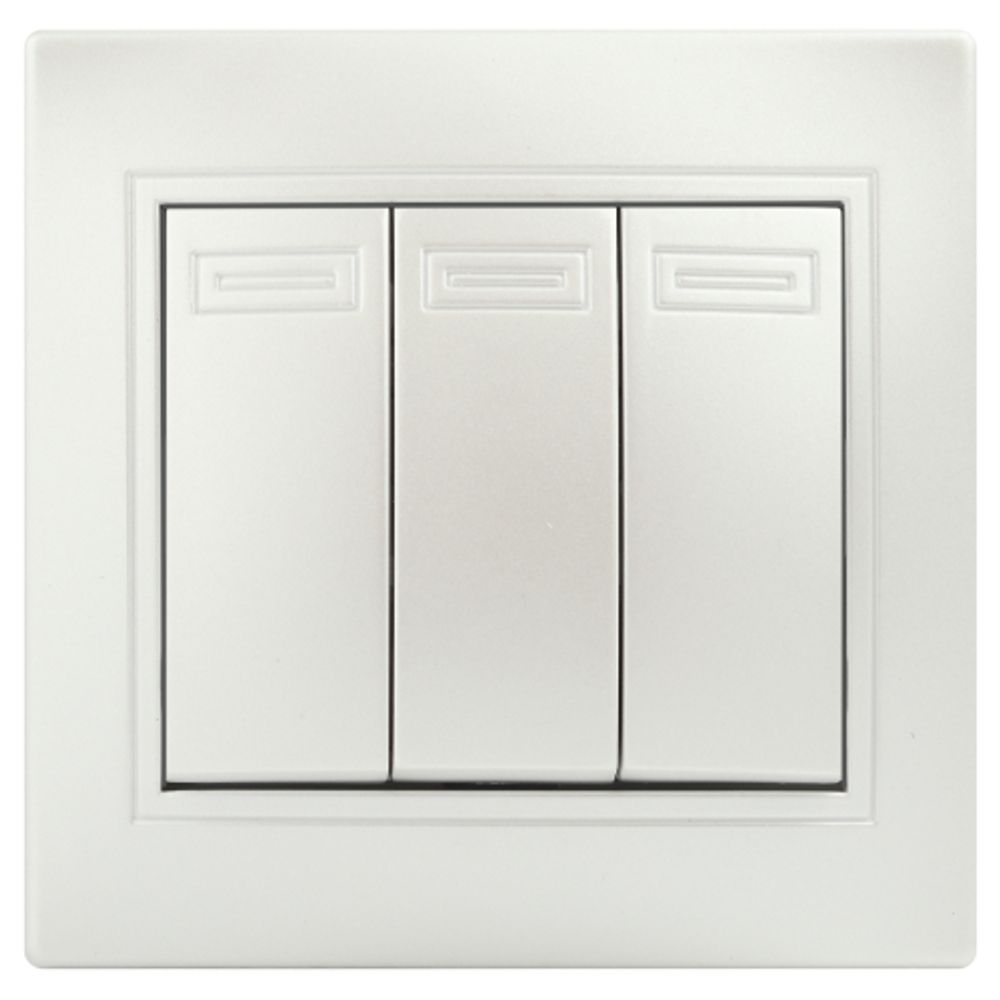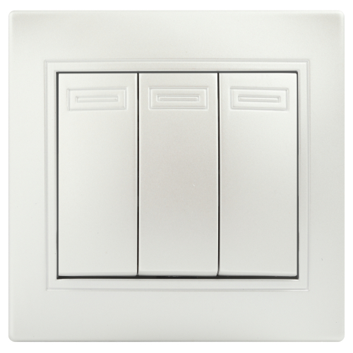Выключатель Трехклавишный серии Intro Plano скрытой установки цвет перламутр 1-106-06. Номинальные характеристики 10А 250В . Выключатель выполнен из качественного негорючего термопласта, укомплектован одноместной рамкой, оснащён винтовыми клеммами. Вертикальное расположение клемм обеспечивает удобный и надёжный монтаж. Клеммы с двумя отверстиями позволяют соединять соседние выключатели шлейфом. Установка в подрозетник производится как на монтажные лапки, так и на винты. Для установки 2-х и более выключателей в несколько подрозетников в ряд дополнительно используются многоместные рамки: 2-х постовая - 1-502-хх, 3-х постовая 1-503-хх, 4-х постовая - 1-504-хх (где хх - цветовой код: 01 - белый, 02 - слоновая кость, 03 - алюминий, 04 - шампань, 05 - антрацит, 10 - венге, 11 - сосна).