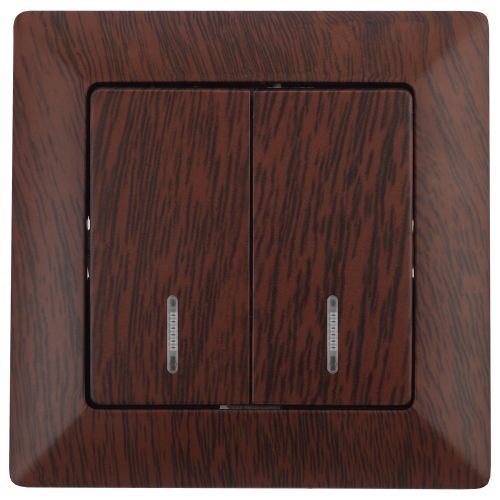 Выключатель Intro Solo 4-105-10 двухклавишный с подсветкой, 10А-250В, IP20, СУ, венге