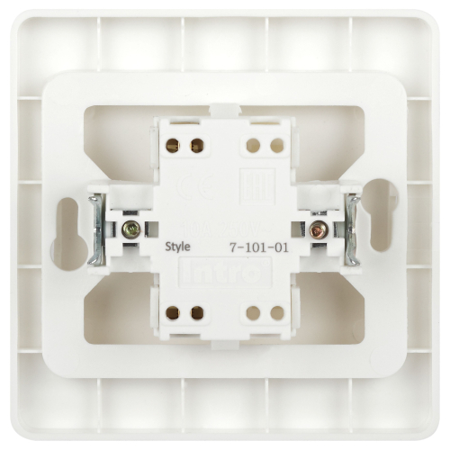 Выключатель 1-клавишный серии Intro ST скрытой установки цвет белый 7-101-01. Номинальные характеристики 10А 250В . Выключатель выполнен из качественного негорючего термопласта, укомплектован одноместной рамкой, оснащён винтовыми клеммами. Вертикальное расположение клемм обеспечивает удобный и надёжный монтаж. Клеммы с двумя отверстиями позволяют соединять соседние выключатели шлейфом. Установка в подрозетник производится как на монтажные лапки, так и на винты.