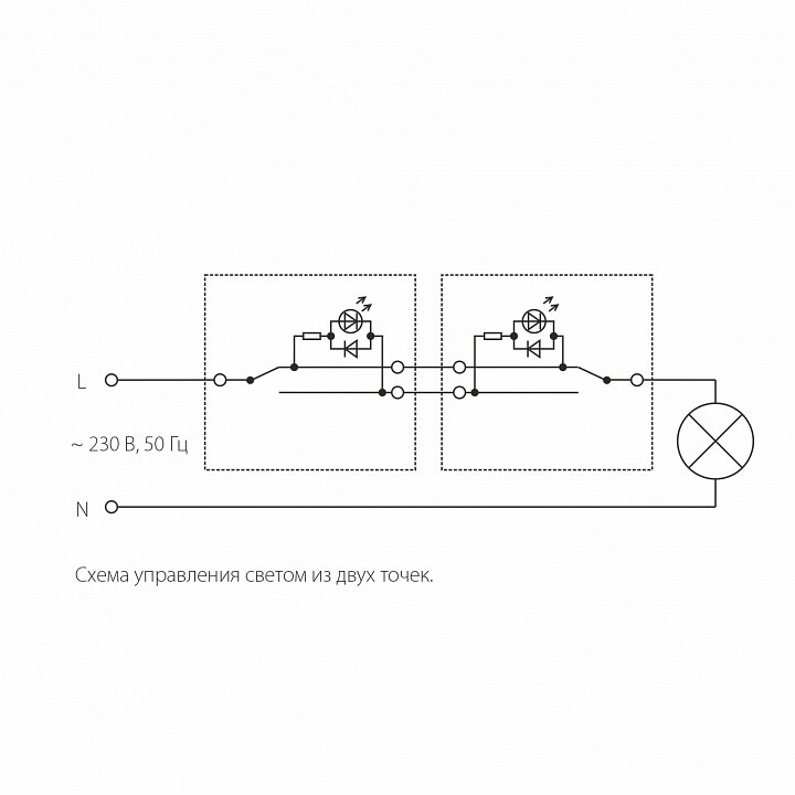 Комплектующие для светильников,Выключатели проходные одноклавишные с подсветкой без рамки