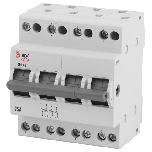 Выключатель-разъединитель трехпозиционный ВРТ-63 ЭРА PRO предназначен для коммутации смешанных активных и индуктивных нагрузок в цепях переменного тока напряжением до 400 В частотой 50 Гц. Применяется в качестве учетно-распределительного оборудования жилых и общественных зданий и сооружений, где предусматривается необходимость в оперативном отключении от сети отдельных групп электропотребителей или участков электрокоммуникации.