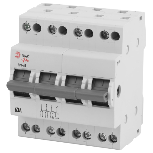 Выключатель-разъединитель трехпозиционный ВРТ-63 ЭРА PRO предназначен для коммутации смешанных активных и индуктивных нагрузок в цепях переменного тока напряжением до 400 В частотой 50 Гц. Применяется в качестве учетно-распределительного оборудования жилых и общественных зданий и сооружений, где предусматривается необходимость в оперативном отключении от сети отдельных групп электропотребителей или участков электрокоммуникации.
