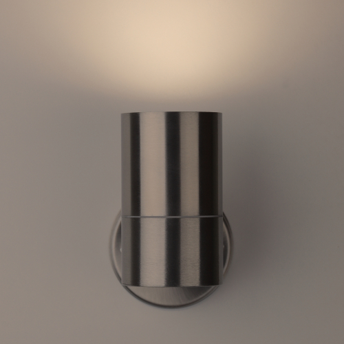 Светильник декоративный настенный WL14 создает интересные световые композиции, подчеркивает структуру материалов. Подходит для наружного уличного освещения. Цоколь для источника света GU10, напряжение питания 220В ~50/60Гц, материал нержавеющая сталь/стекло, цвет светильника хром, размер 77*180 мм, D60 мм, максимальная мощность лампы 50 Вт, степень защиты IP44