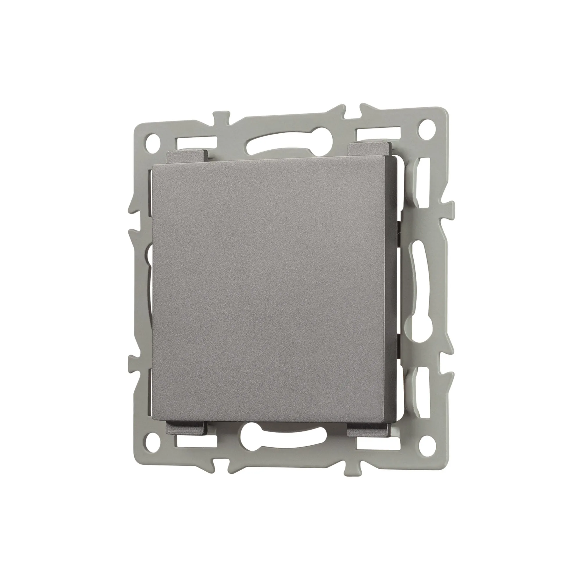 Заглушка на 1 пост совместима с рамками серий VERSA/GLARE/PRESTO. Выполнена из тугоплавкого пластика серого цвета. За счет алюминиевого суппорта, устройство надежно фиксируется в установочном подрозетнике.