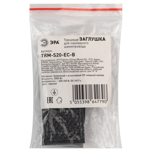 Торцевая заглушка для накладного магнитного шинопровода NOVA TRM-S20