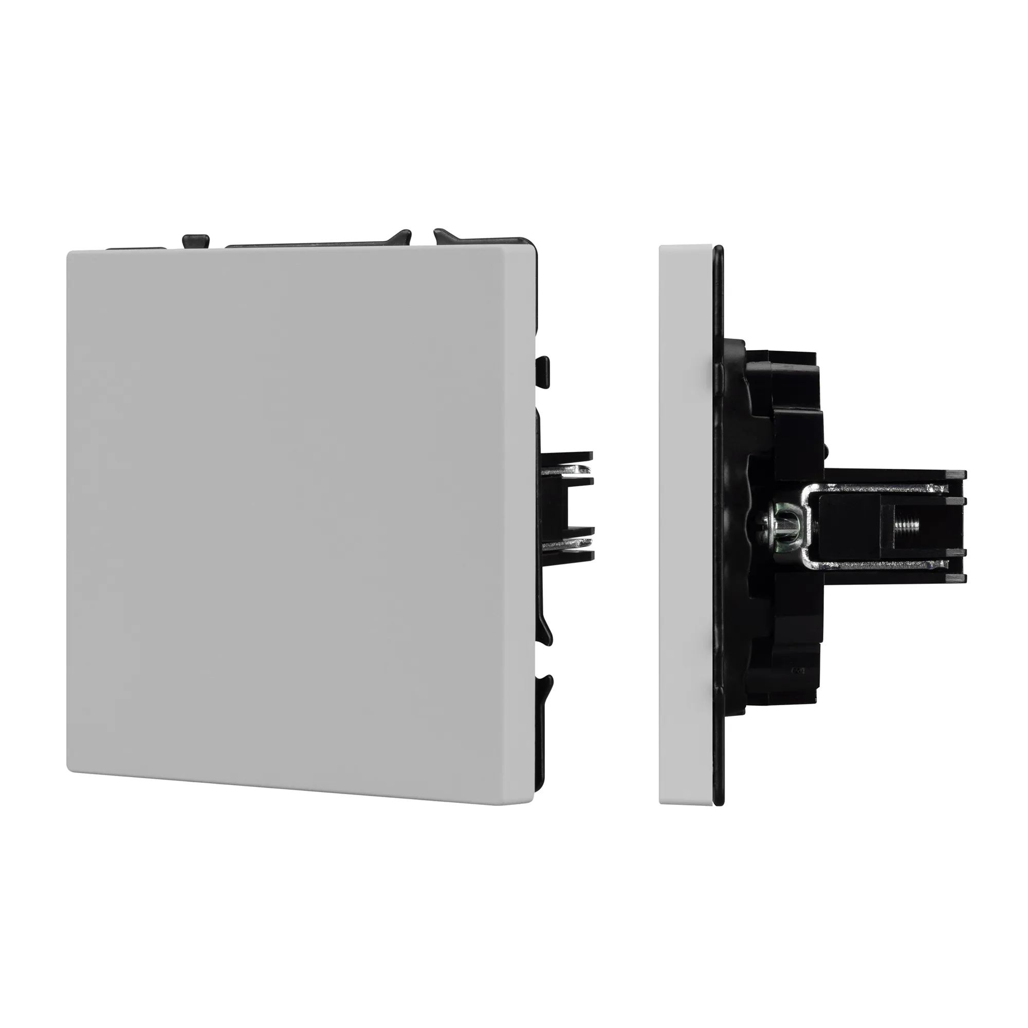 Заглушка предназначена для перекрытия поста под дальнейшее размещение механизма, не имеет питающих элементов и выполняет декоративную функцию. Усиленные распорные лапки двойного захвата надежно фиксируют устройство в установочном подрозетнике круглого сечения диаметром 60мм.