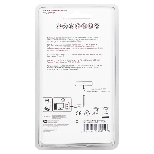 Зарядное устройство KODAK , предназначено для заряда 4 никель-кадмиевых (Ni-Cd) и никель-металлогидридных (Ni-MH) аккумуляторов .