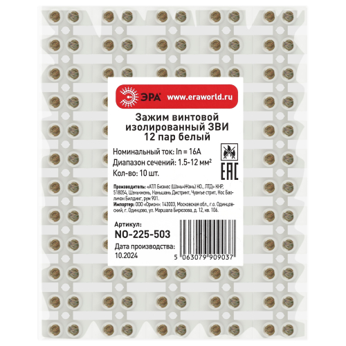Зажимы винтовые изолированные ЗВИ-нг ЭРА представляют из себя контактную латунную колодку с зажимным винтом, заключенную в диэлектрический негорючий корпус и предназначены для создания проходного соединения всех типов проводников, защищая провод от повреждения и исключая возможность замыкания на корпус электроустановки. Применяются в распаячных коробках, для подключения осветительного и другого электрооборудования.