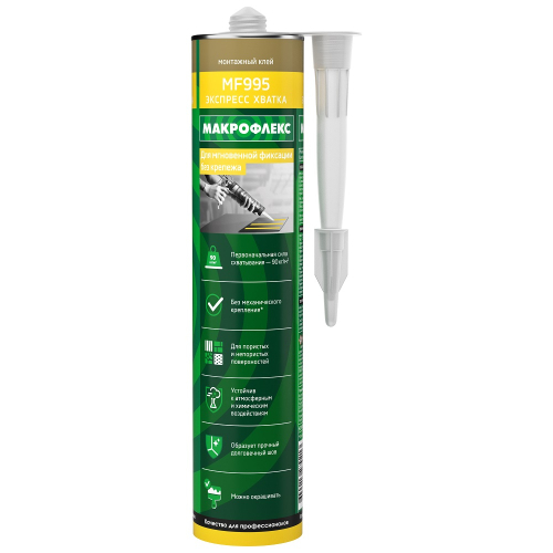 Высококачественный монтажный клей на основе каучука, обеспечивает высокую первоначальную силу схватывания уже с первых секунд после нанесения.