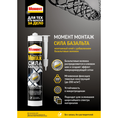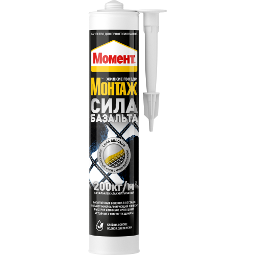 Универсальный монтажный клей на основе водной дисперсии полиакрилатов с добавкой базальтовых волокон.