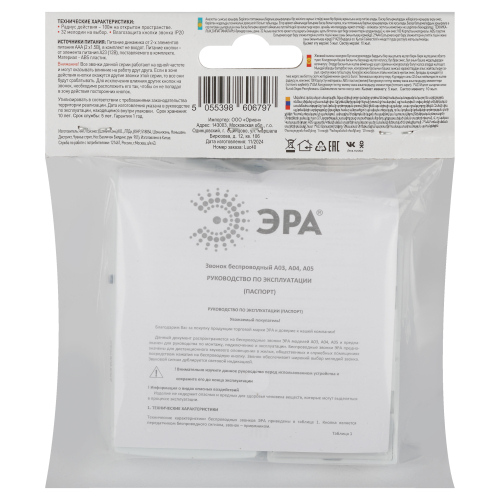 ЭРА А03 - беспроводной аналоговый дверной звонок универсального дизайна в легком прочном корпусе базового белого цвета. Доступны 32 полифонические мелодии, их можно менять под настроение - звонок никогда не надоест. Работает от 3 мизинчиковых батареек (3 х ААА). Простой и лаконичный корпус звонка в белом цвете смотрится элегантно. Не нужно подключение к электросети, быстро монтируется в любое удобное место. Радиус действия - 100 метров. Этот звонок от компании ЭРА будет служить Вам долго!