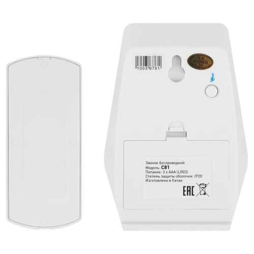 Беспроводной электрический дверной звонок с 6 качественными мелодиями, световым сигналом и влагозащищённой кнопкой. Прост в подключении. Отсутствие проводов позволяет использовать звонок с максимальным удобством. Динамик можно разместить в коридоре или взять с собой в комнату/на кухню если не хотите разбудить домочадцев. Беспроводные звонки ЭРА хороши для дачи или загородного дома установите кнопку на дверной калитке, а динамик в помещении. Радиус действия - до 100 метров. Звонок работает от батареек: 1 шт А23 для кнопки (входит в комплект), 2 шт АА пальчиковые для динамика (в комплект не входят). При среднем использовании (до 20 звонков в день) исправно проработает без замены элементов питания не менее года. Аккуратный внешний вид и приятная упаковка - отличный подарок на новоселье и другие праздники!
