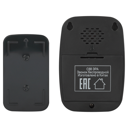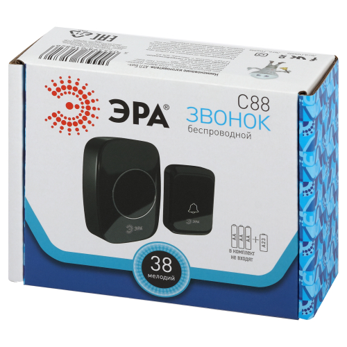 ЭРА С88 – беспроводной звонок с 38 полифоническими мелодиями. Можно крепить на саморезы или самоклеящуюся основу (крепежи в комплекте). Звонок работает от 3 пальчиковых батареек (3 х АА, не в комплекте), кнопка звонка – от батарейки А23 (в комплекте!). Корпус изготовлен из легкого прочного пластика базового черного цвета. Дизайн звонка лаконичный, такой дверной звонок – универсальная практичная покупка для дома. Цвет данного звонка - чёрный (арт. Б0054087), в ассортименте ЭРА есть аналогичная модель в белом цвете - арт. Б0054090.