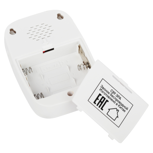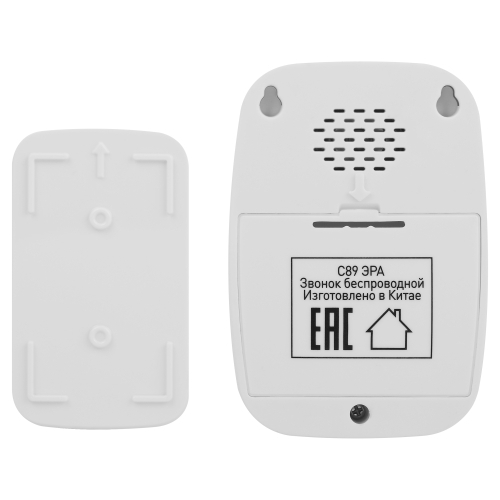 ЭРА С89 – звонок дверной беспроводной с кнопкой. Выполнен в актуальном минималистичном дизайне. Корпус базового белого цвета, кнопка декорирована лаконичным синим ободком. Компактный и легкий звонок крепится двумя способами – на саморезы или самоклеящуюся основу, поставляемые в комплекте. Доступен выбор мелодии звонка из встроенной базы с 38 полифоническими вариантами. Мелодии можно менять по настроению, по сезону и т.д. Звонок не требует подключения к электросети – работает от батареек: 3 «пальчиковые» (не в комплекте) и А23 для кнопки (в комплекте). Цвет данного дверного звонка - белый (арт. Б0054090), в ассортименте ЭРА есть аналогичная модель в черном цвете - арт. Б0054087.