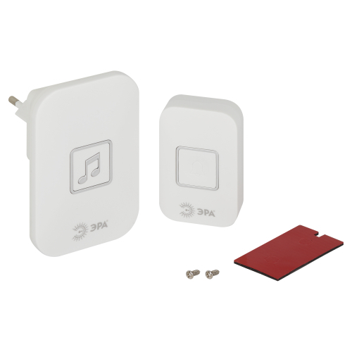 Беспроводной дверной звонок ЭРА С98 с 4 уровнями громкости и 60 полифоническими мелодиями. В линейке представлены: белый звонок дверной - арт. Б0054089, чёрный звонок дверной - арт. Б0054086.