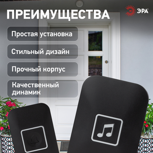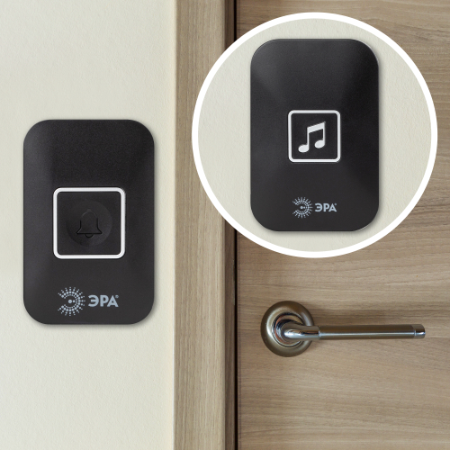 Установка кнопки звонка займет пару минут – в комплекте самоклеящаяся основа и саморезы. Кнопка работает от батарейки А23. Кнопку можно монтировать на дальнем расстоянии от звонка, что актуально для дач, загородных домов. Новый чёрный звонок дверной от торговой марки ЭРА отличает современный минималистичный дизайн корпуса.